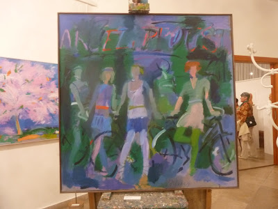 az életműkiállítás... ahogy belépek a borongó alkonyodó utcáról a kiállítóterembe, meglep az erős , élénk színek kavalkádja