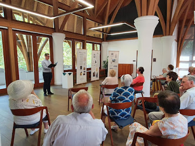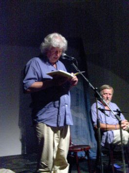 c. opuszát (a Jelenkorból egyébként, amit én is magammal hoztam, és már elolvastam , de egész más, ha a szerző szájából hallom, és közben látom barátságos tekintetével kisérve a szöveget, és mellette a megszólítottat, mindkettőt "összeöltözve" világoskék ingben és mosolyogva, derűsen, hétköznapian természetesen és mégis ünnepivé téve az alkalmat, ahogy körbeüljük szinte őket, mi is, a hallgatóság, akár egy Kosztolányi korabeli kávéházban, ahol az írók éltek-írtak... (ami majdnem ugyanaz), most jól kihallgatjuk őket mi is...: