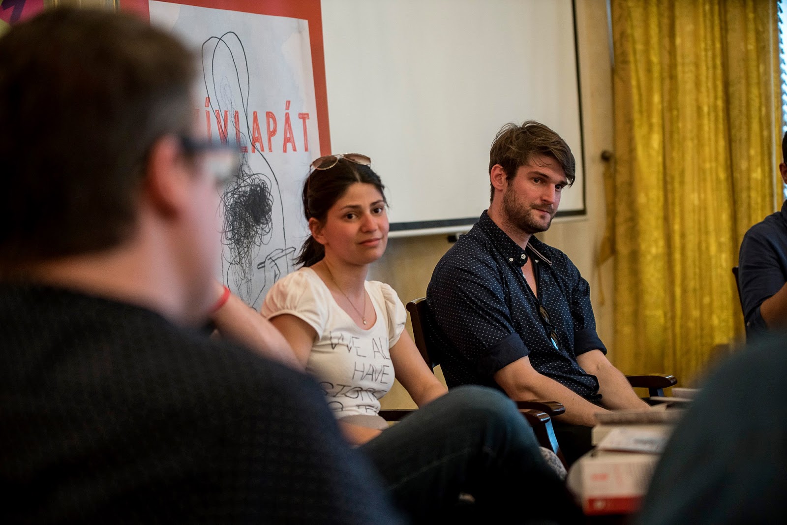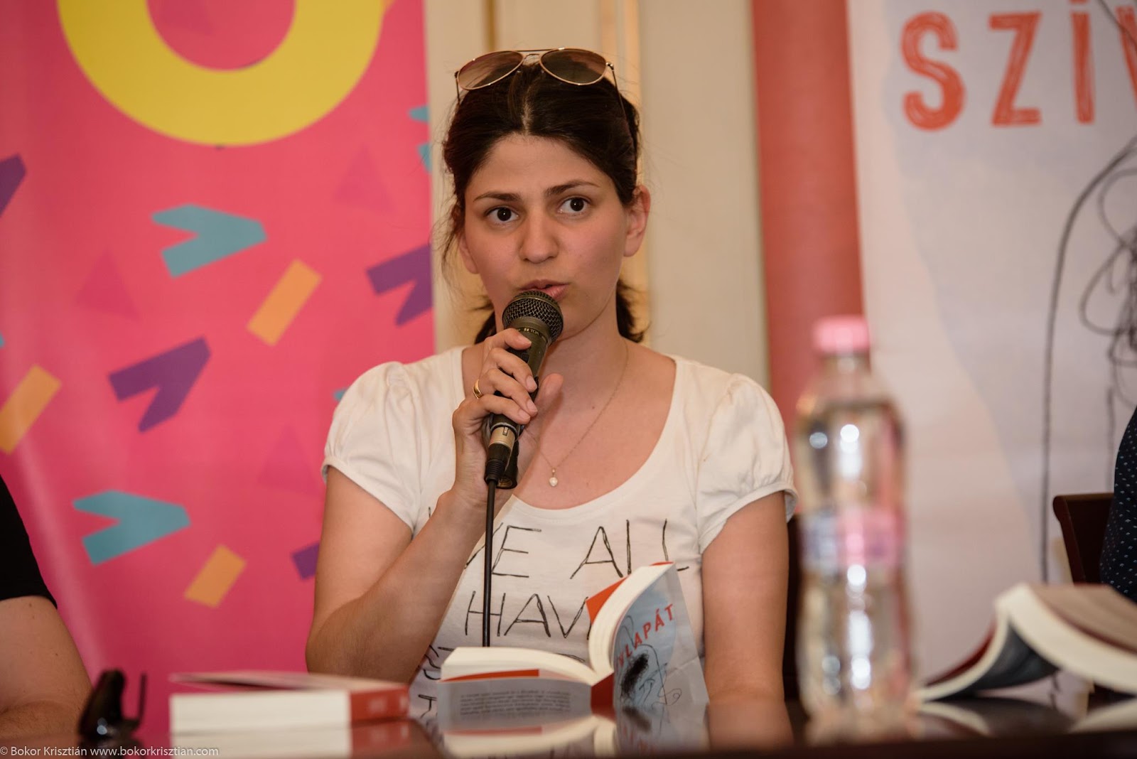 s hogy lányom aktiv jelentlétét is csak a neten követhetem, tudósitásokban, itt-ott felbukkanó fotókon... ezt be is raktam, ahol mint (épp Sziv Ernőt alias Darasit) szerkesztő háttérben áll a könyvheti dedikáláson a Magvető sátornál