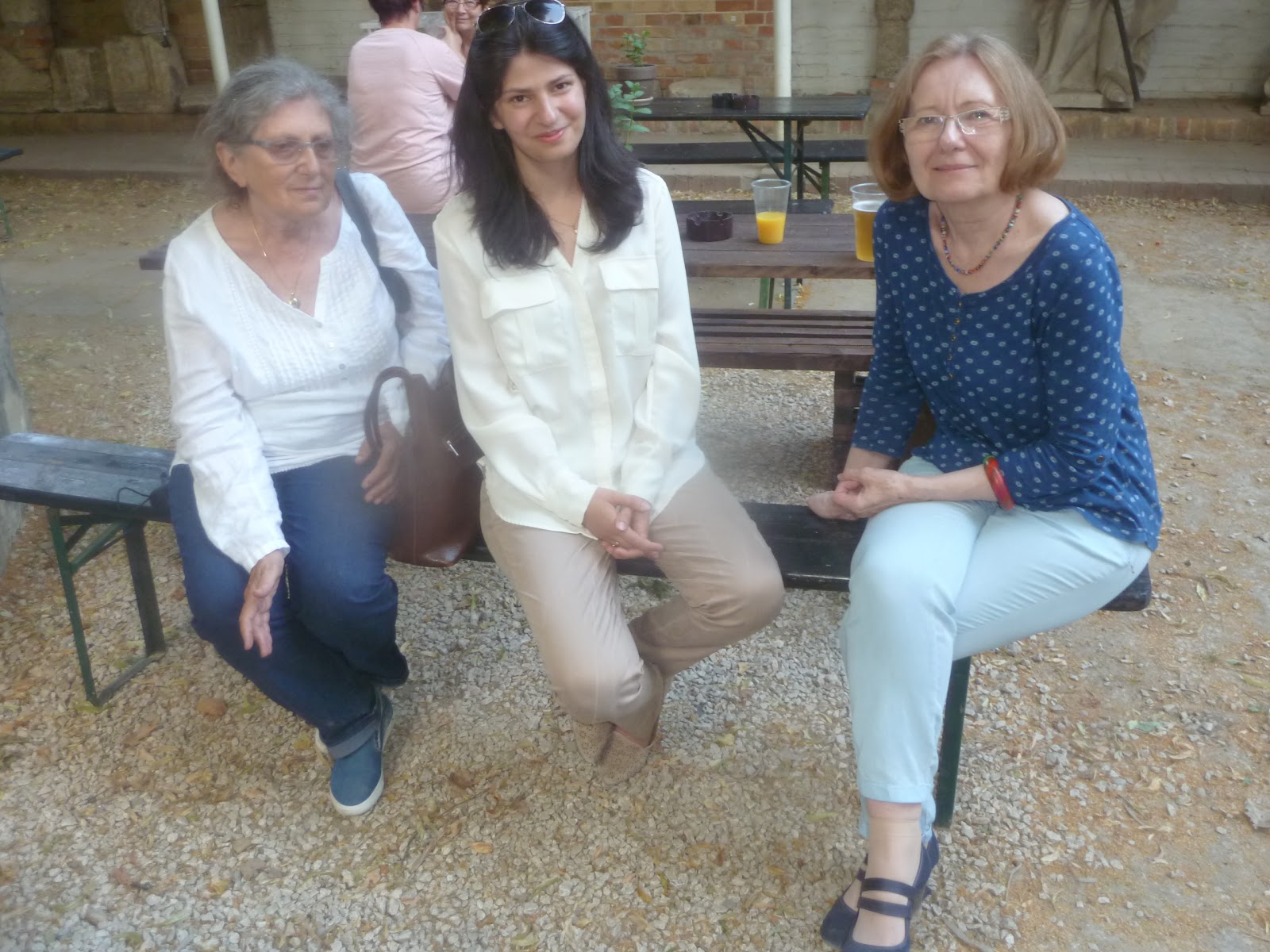 a bemutató után a patinás szegedi várkertben meg engem is odaültetett Biró-BaloghTomi lányom mellé (miután újra megbeszélük Radnóti makói báli látogatását, hol anyunak bemutatták közös társaságban ,...) legyen már közös képünk, rég nincs, aztán csak néztük, homályos lett-e?