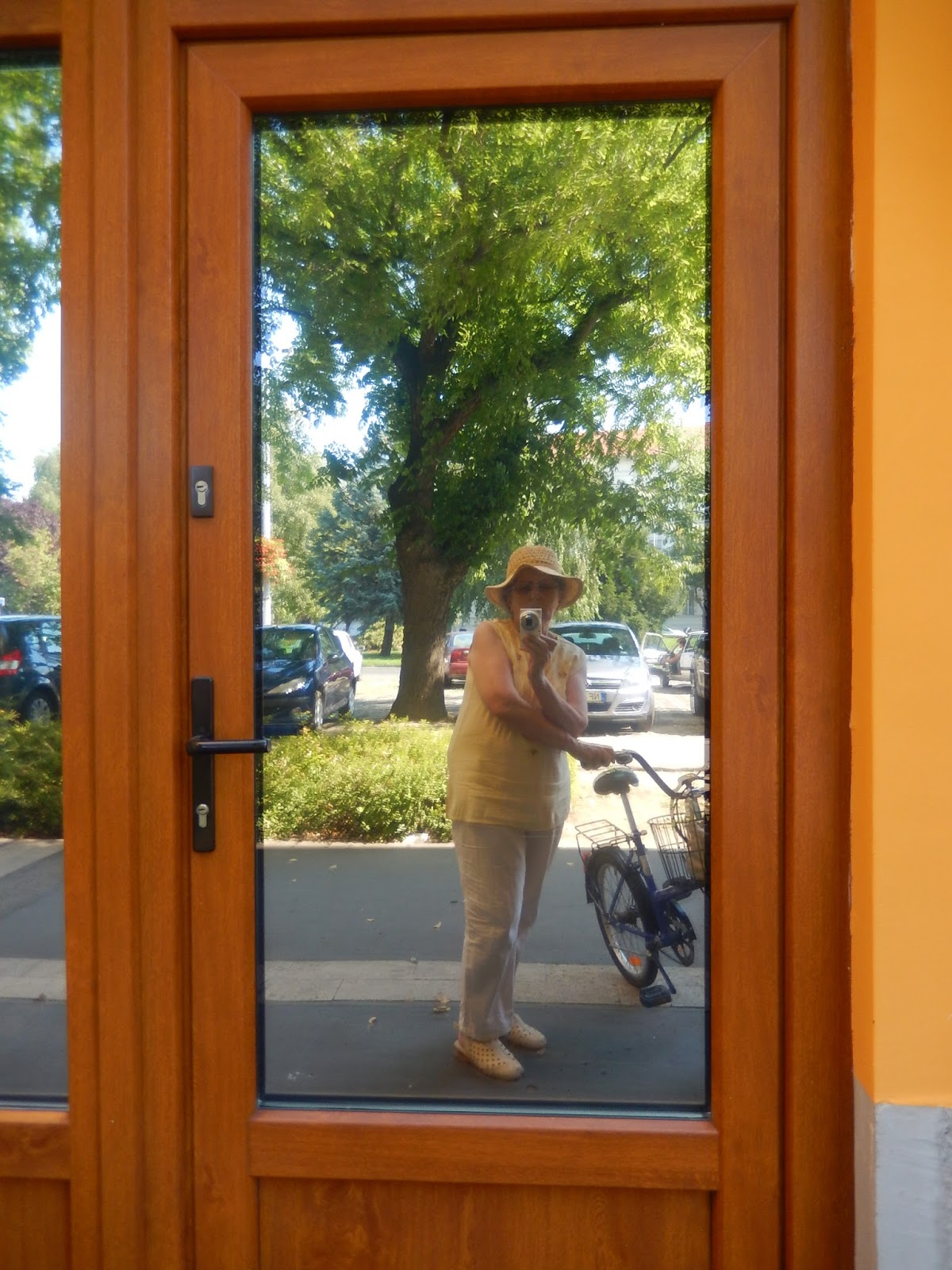 Csináltam is egy fotót magamról egy másik ajtóban, kontrollként.... Hát így néz ki egy képlopó?:No le számítva a feldühödtség nyomait...