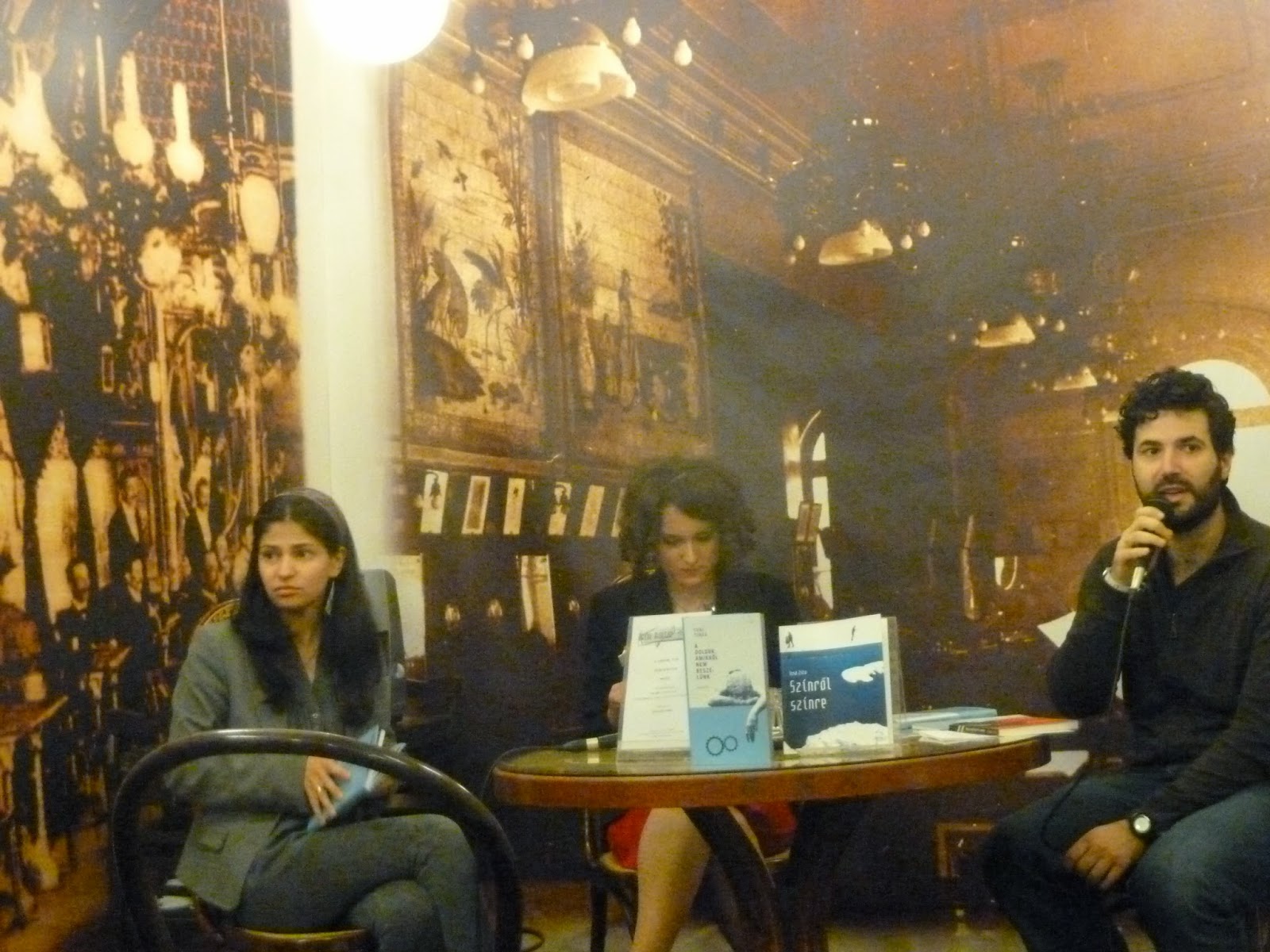 és a könyvbemutató is a Nyitott műhelyben, (még egy tudósitásféle, a Tiszatájból) még november 19-én, két kérdezővel és érdeklődő hallgatósággal ,felvillanyozó volt