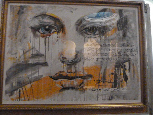 A csillagos zsinagógakupola alatt megnyugszom...de csak időlegesen, kifelé menet szembetűnő, a beázás miatti építmény a padsorok közt, a falon meg a 44-es deportálás "emlékképei".... az aulabeli képzőművészeti kiállítás festményarcain pedig könnyek... könnyek...
